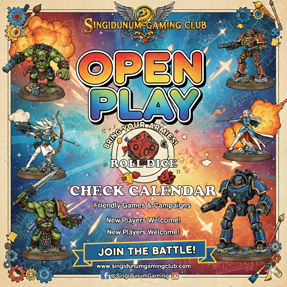 January 28 @ 6:00 pm - 9:00 pm Open Play 28-01-2026 Singidunum Gaming Club Bulevar Despota Stefana 68b, Belgrade